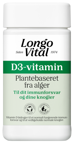 LongoVital D-vitamin er plantebaseret D3-vitamin udvundet fra alger og indeholder derudover ingen animalske ingredienser. Tilskuddet er derfor også velegnet til vegetarer og veganere.